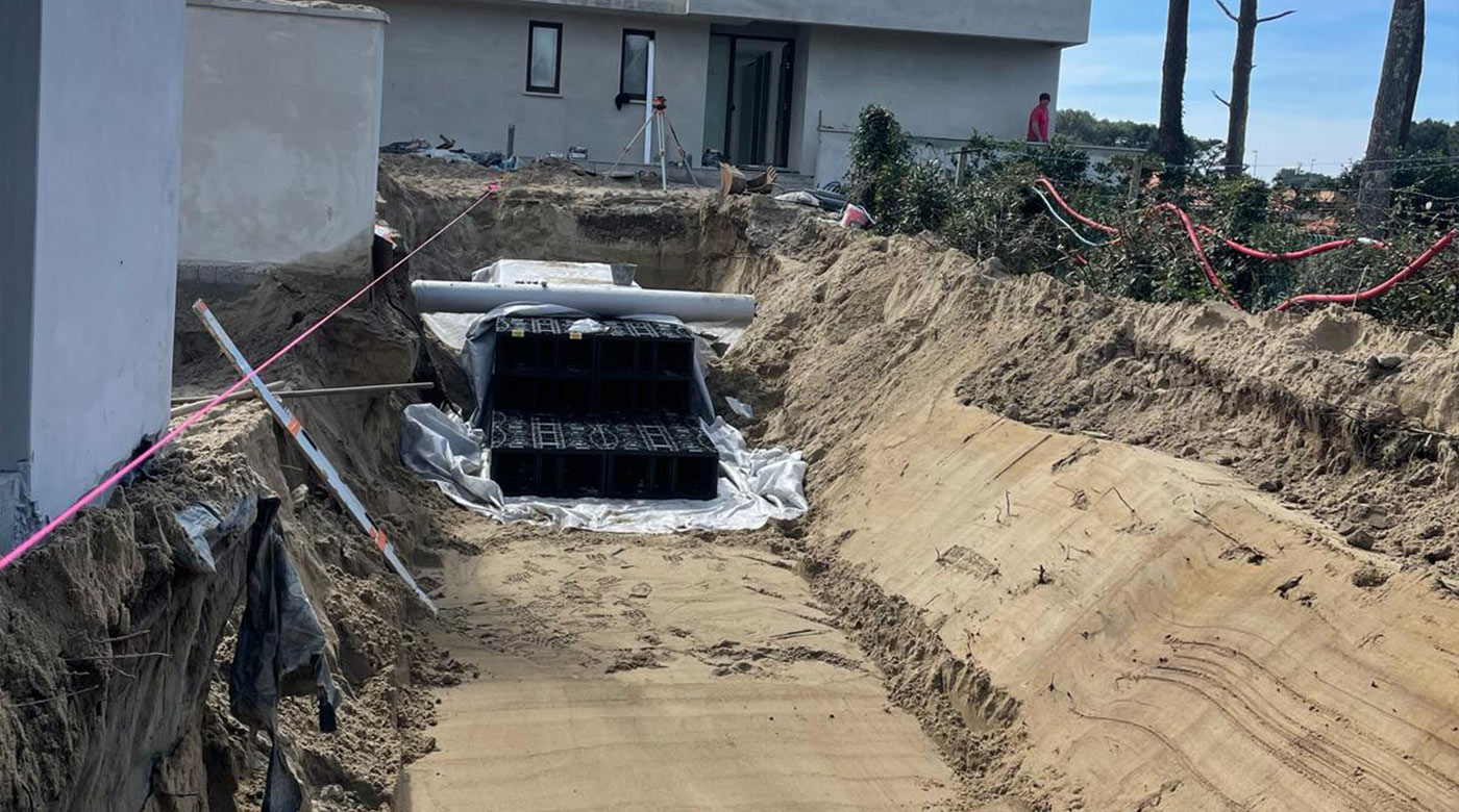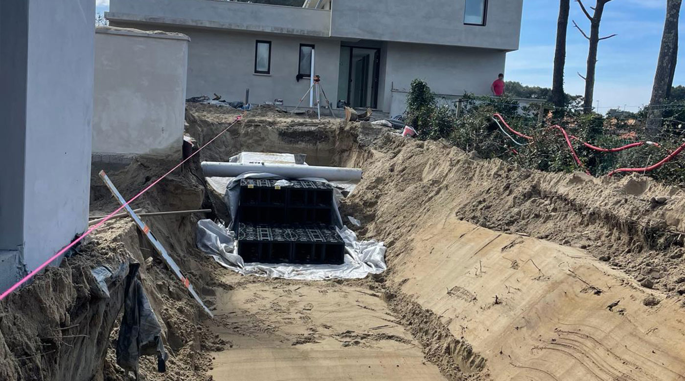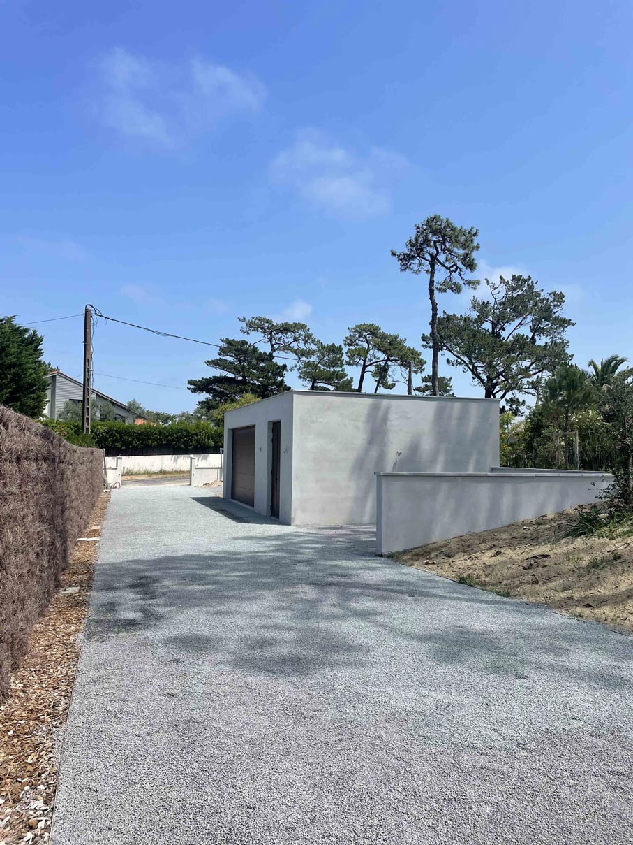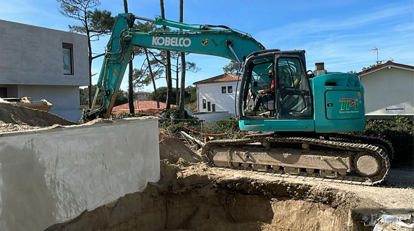 VILLA A CHIBERTA Réalisation d’une villa à Chiberta Terrassement Pose d’une cuve de récupération des eaux de pluies Réseaux EU et EP Réseaux secs Cheminement avec bordures acier Client: Particulier Lieu: Chiberta Category: EntrepriseTerrassementVRD